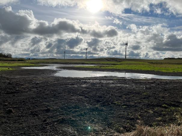 Våtmark St Jordberga efter åtgärd – vattenspegeln skapades direkt med vatten från dräneringar på fälten.